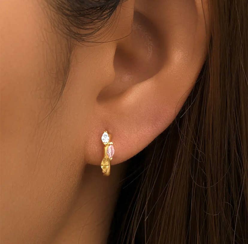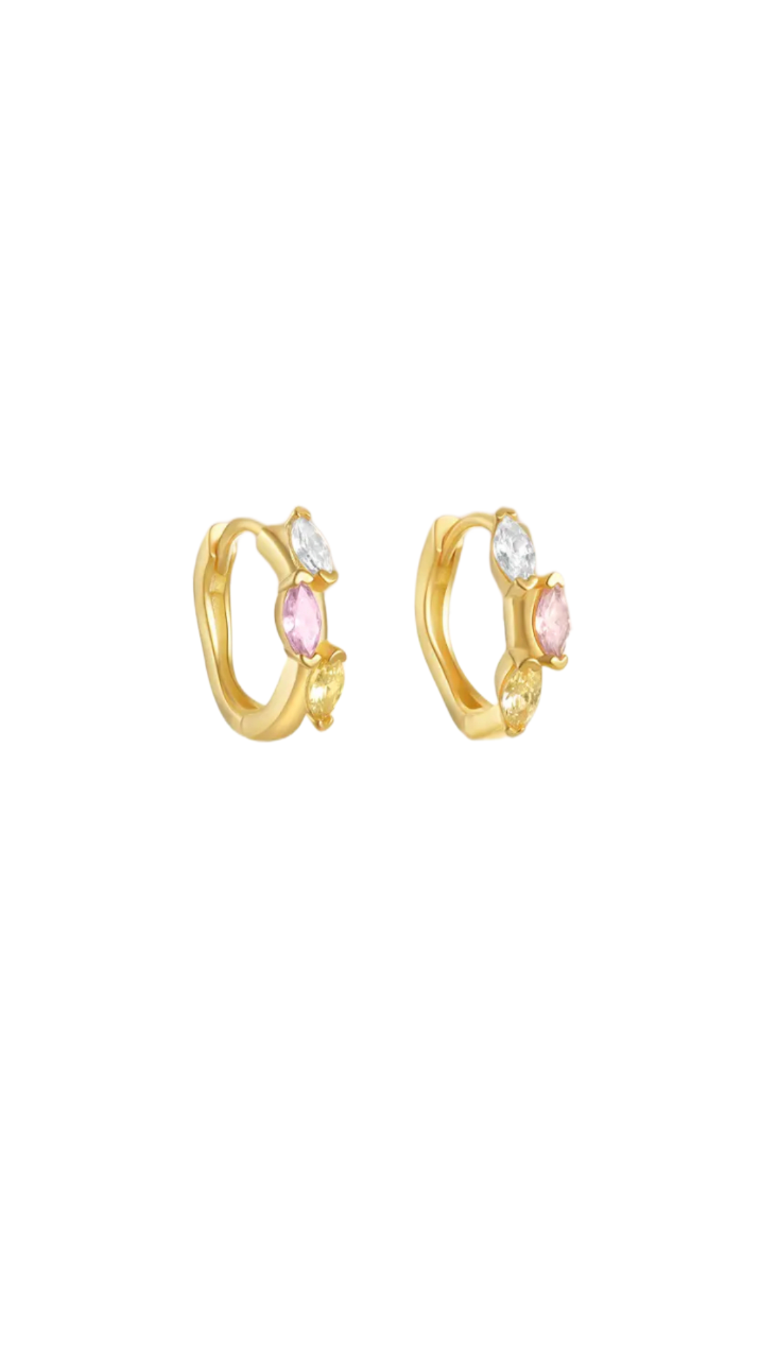 This subtle pop of pink & gold make this pair a stunning staple. Perfect as a second or third for that nice layered look. - 925 Sterling Silver Gold Plated - Zirconia Stone feature